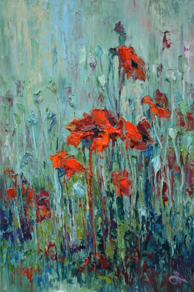 ЦВЕТЫ МАКИ, 60Х90 МАСЛО, ХОЛСТ